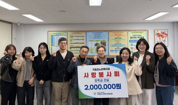 부산시 기장군도시관리공단 산하 기장군노인복지관 소속 어르신 봉사단체 '사랑봉사회'가 기장 특산물 쪽파 판매 수익금 등을 모아 지역 청소년을 위한 장학금을 전달하며 따뜻한 나눔을 실천했다.