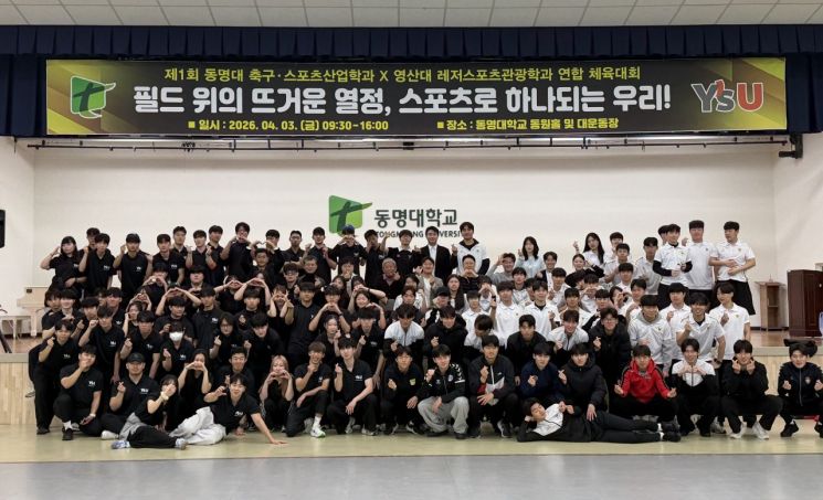 동명대학교 축구·스포츠산업학과(학과장 진대근)는 지난 3일 영산대학교 레저스포츠관광학과와 함께 교내에서 '2026 TU-YSU 연합 한마음 체육대회'를 열었다고 10일 알렸다.