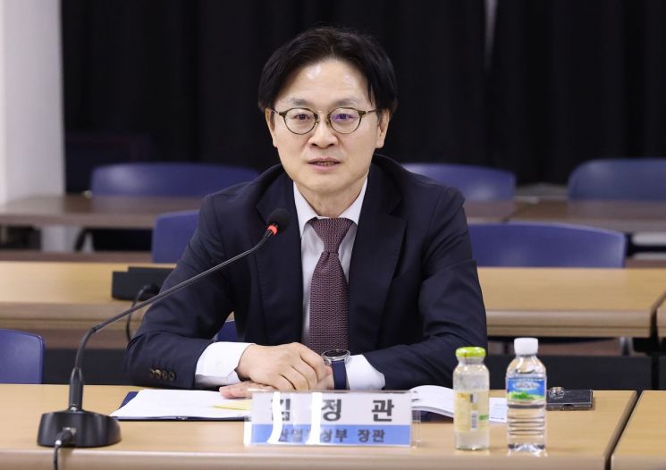 김정관 산업통상부 장관이 지난달 30일 서울 영등포구 한국노동조합총연맹(한국노총) 대회의실에서 열린 '한국노총-산업통상부 장관 간담회'에서 모두발언하고 있다. 연합뉴스