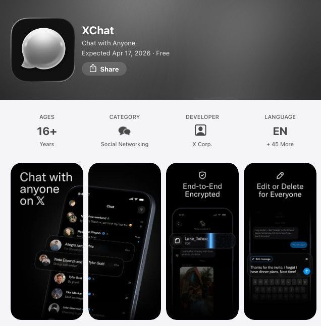 11일(현지시간) 애플 앱스토어에 따르면 X는 메시지 앱 'X챗'을 오는 17일 출시할 예정이다.