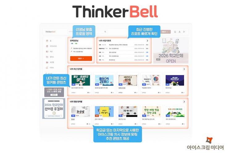 아이스크림미디어는 참여형 수업 플랫폼 '띵커벨(Thinkerbell)'이 사용자 맞춤형 UI/UX를 중심으로 사이트를 전면 개편했다고 13일 밝혔다.