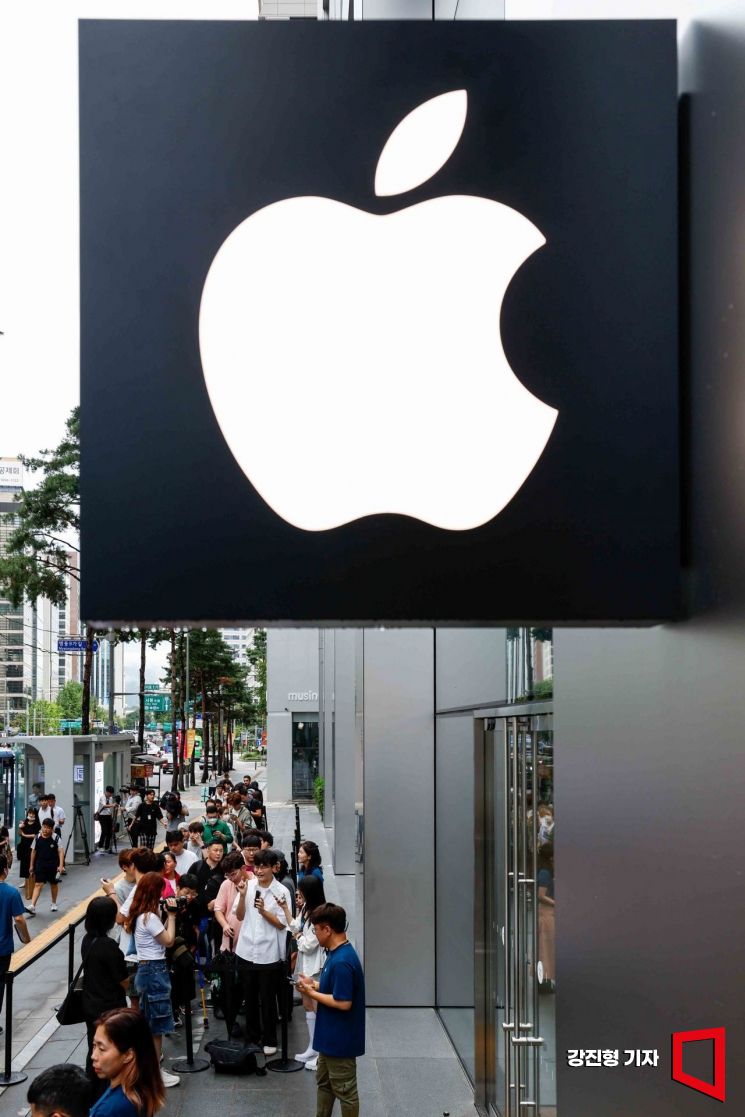 애플의 첫 인공지능(AI) 스마트폰 '아이폰16'이 국내에 출시된 20일 서울 중구 명동 애플스토어에서 구매자들이 줄을 서고 있다. 사진=강진형 기자aymsdream@