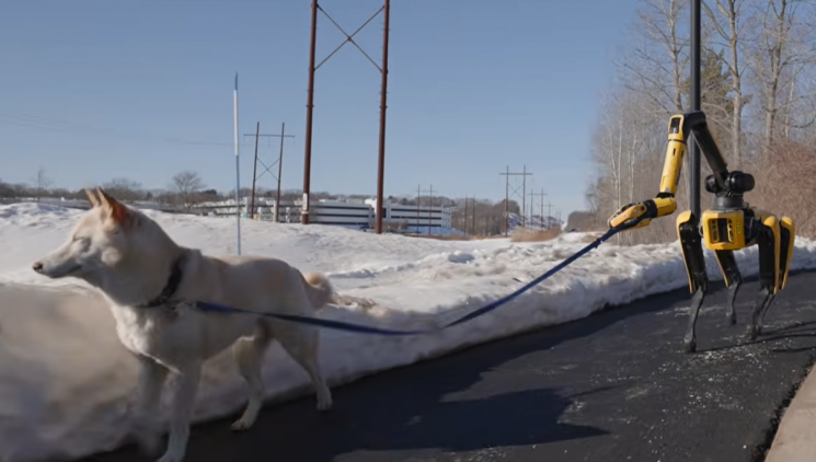 할 일 목록에 강아지 산책시키기가 추가되자 스팟은 야외로 나가 목줄을 잡고 강아지를 산책시켰다. 눈밭에서 강아지와 공 던지기 놀이를 시도하려 해 보지만 멀뚱멀뚱 쳐다만 보는 강아지에게 스팟이 신경전을 벌이는 재치 있는 모습으로 영상이 끝났다.