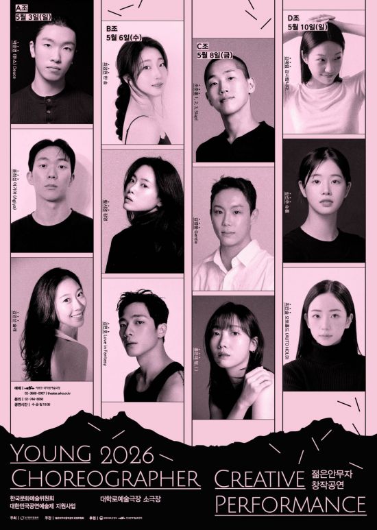 한국 무용계의 미래를 조망할 수 있는 2026젊은안무자창작공연이 5월3일부터 10일까지 대학로예술극장 소극장에서 열린다.