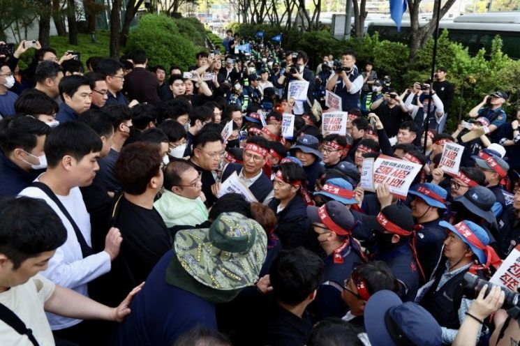 양경수 민주노총 위원장은 "교섭에 응하지 않는 원청사들을 상대로 7월 총파업 투쟁을 조직하겠다"고 경고했다.