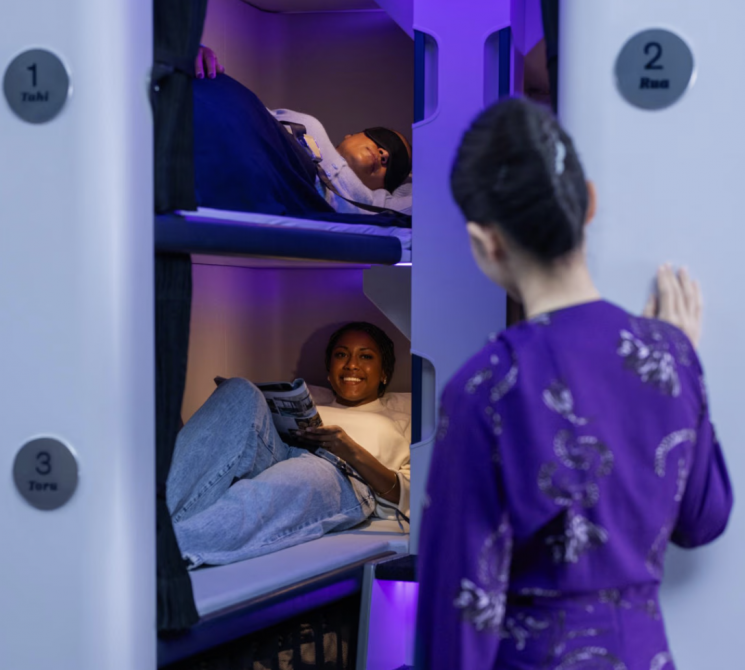 15일(현지시간) 영국 가디언에 따르면 에어뉴질랜드는 항공사 최초로 침대형 수면 캡슐 서비스인 '스카이네스트(Skynest)'를 도입한다고 밝혔다.