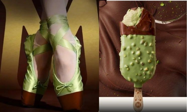 문제가 된 광고는 신제품 '투톤 아이스크림'을 홍보하기 위해 제작된 것으로 발레 슈즈의 색 대비에서 영감을 받았다는 콘셉트를 내세웠다. 피스타치오와 초콜릿 조합의 제품 이미지와 함께 연두색과 갈색이 섞인 발레 슈즈, 여성의 발을 강조한 장면 등이 반복적으로 등장한다.