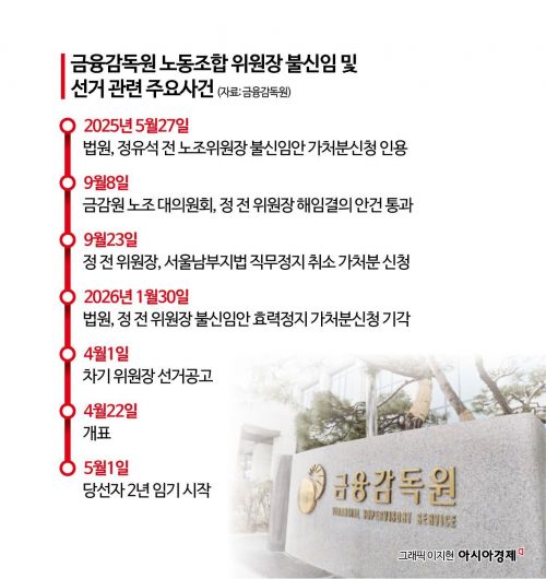 이번 선거에 금감원 안팎의 시선이 쏠리는 이유는 지난해 전임 위원장의 불신임 논란으로 인한 내부 갈등을 봉합하고 치러지는 첫 선거이기 때문이다. 앞서 노조는 지난해 9월 대의원회를 통해 전임 위원장에 대한 해임 안건을 가결했으며, 이후 정보섭 수석부위원장을 위원장 대행으로 추대해 조직을 운영해 왔다.