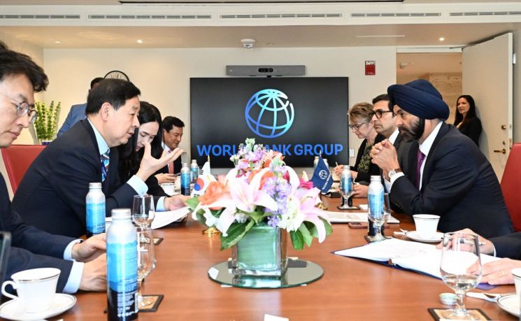 G20 재무장관회의 및 국제통화기금(IMF), 세계은행(WB) 춘계회의 참석차 미국 워싱턴D.C.를 방문한 구윤철 부총리 겸 재정경제부 장관이 16일(현지시간) 세계은행(WB)에서 아제이 방가 세계은행(WB) 총재와 면담을 하고 있다. 재정경제부