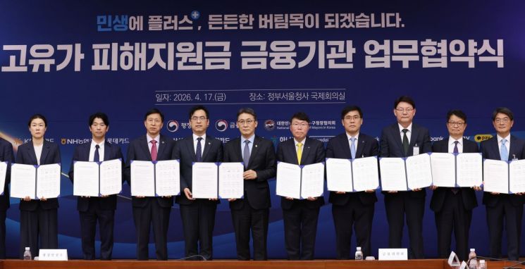행정안전부는 고유가 피해지원금의 신속한 지급을 위해 금융위원회, 시장·군수·구청장 협의회, 시중 9개 카드사, 인터넷은행, 핀테크사들과 17일 업무협약을 맺었다.
