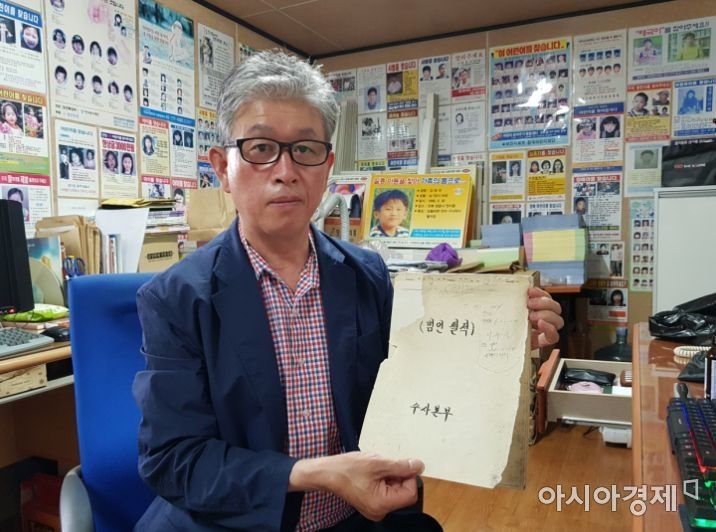 Chairman Naju Bong (65) of the National Association of Citizens for Finding Missing and Lost Families (Jeonmichatmo). Holding materials related to a missing person case. Photo by Kay Kim katekim221@asiae.co.kr