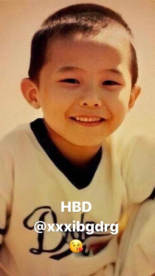 The day was G-Dragon's birthday, and the photo appears to be a childhood picture of G-Dragon.
