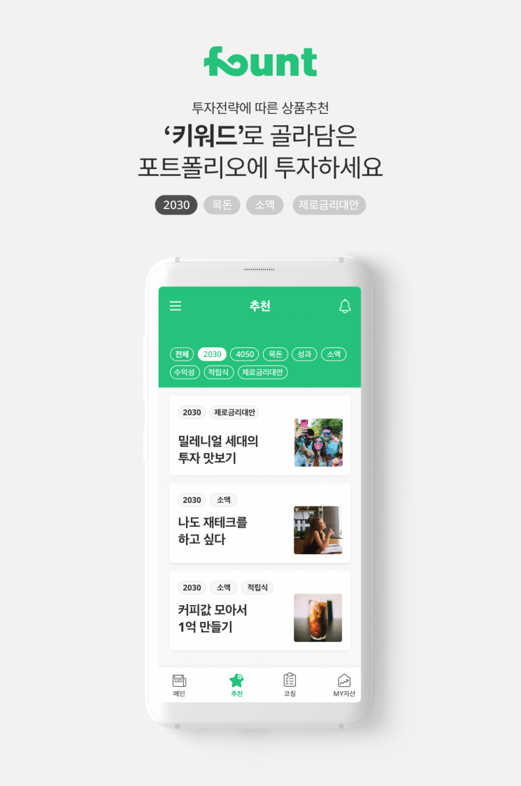 He continued, “Since the portfolios are classified and recommended based on the database analysis of investors who started investing with Fount first, these are already verified portfolio investment products,” adding, “It will be a great help to users who had difficulties composing customized portfolios.”