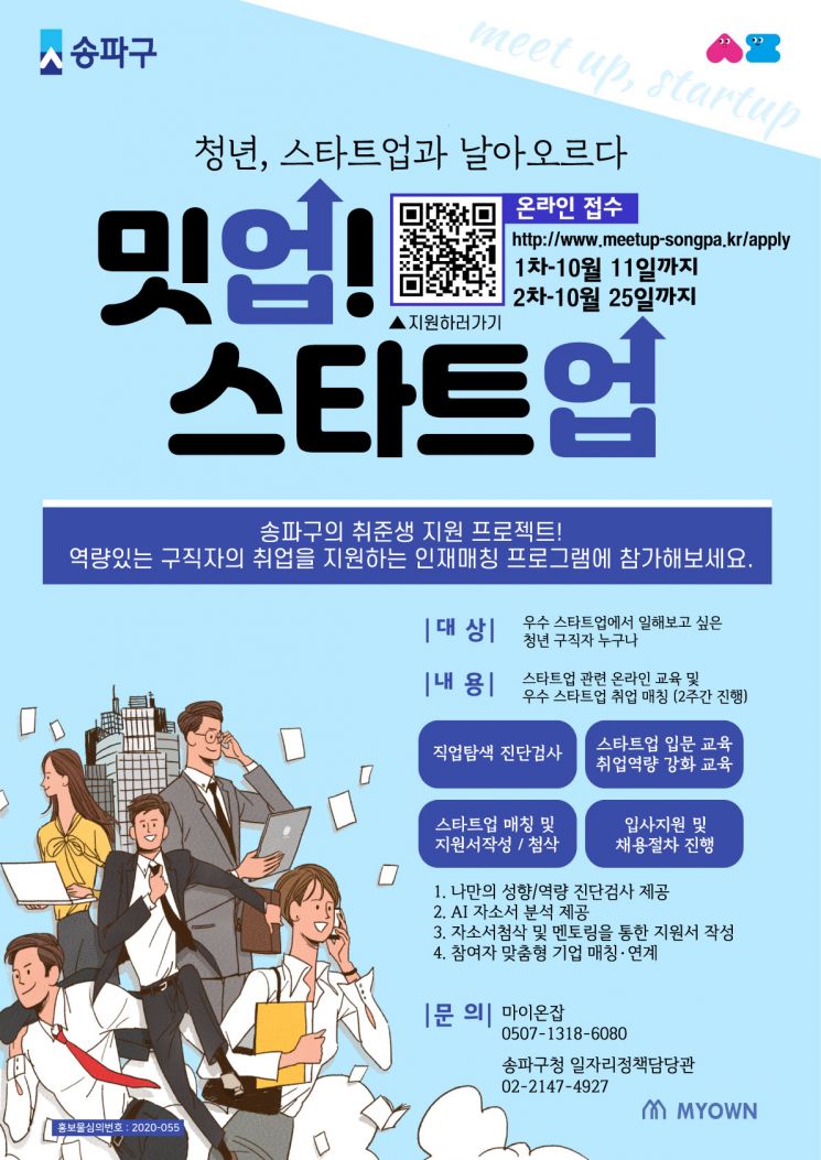 [Asia Economy Reporter Jongil Park] Songpa-gu (Mayor Park Seong-su) is running the 'Meetup! Startup' job matching program until November to assist job seekers and startups in recruitment.