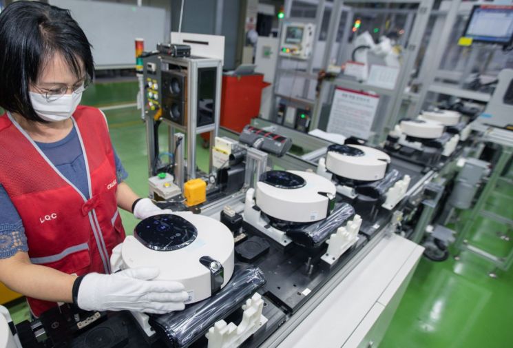 LG Electronics employees are producing the CordZero R9 Objet Collection (model RO971WA) on the robot vacuum cleaner production line in Changwon, Gyeongnam. Photo by LG Electronics