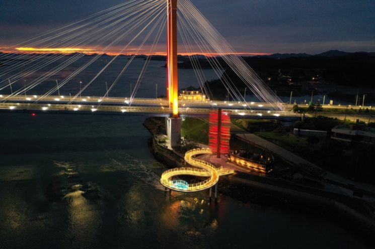 With nighttime landscape lighting, it is also popular for its unique views harmonizing with the twin bridge, Jindo Bridge.