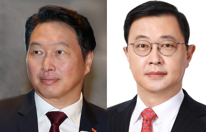 Chairman Chey Tae-won of SK Group (left) and Choi Jae-won, CEO of SK On and Senior Vice Chairman of SK <Photo provided by SK>