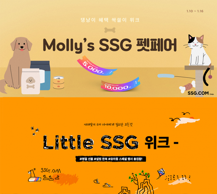 SSG.com announced that from the 10th to the 16th, promotions will be held at the pet supplies specialty store 'Mollys SSG' and the infant and child specialty store 'Little SSG'.