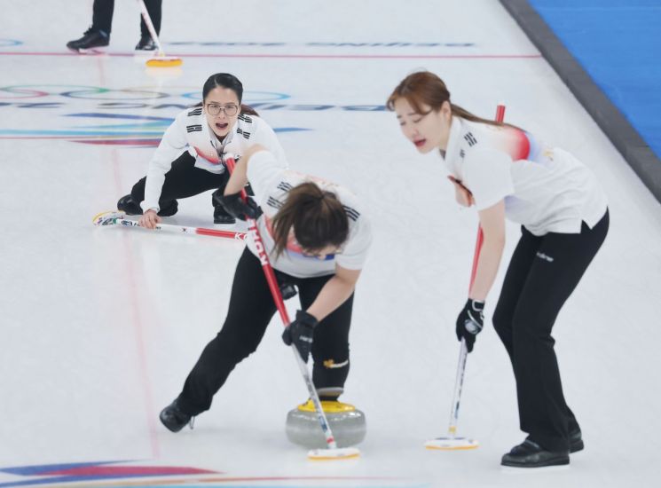 The women's curling national team has hit a red light in their quest to advance to the 2022 Beijing Winter Olympics tournament. Team Kim (Kim Eun-jung, Kim Kyeong-ae, Kim Cho-hee, Kim Seon-young, Kim Young-mi) lost 4-8 to Switzerland in the seventh match of the women's curling round-robin held on the 16th at the National Aquatics Center in Beijing, China. With this fourth loss (and three wins), even if they win the remaining two matches, they cannot advance to the semifinals on their own merit. Currently, the countries with four or more wins are Switzerland (7 wins, 1 loss), Sweden (5 wins, 2 losses), Canada (4 wins, 3 losses), Japan (4 wins, 3 losses), Great Britain (4 wins, 4 losses), and the United States (4 wins, 4 losses).