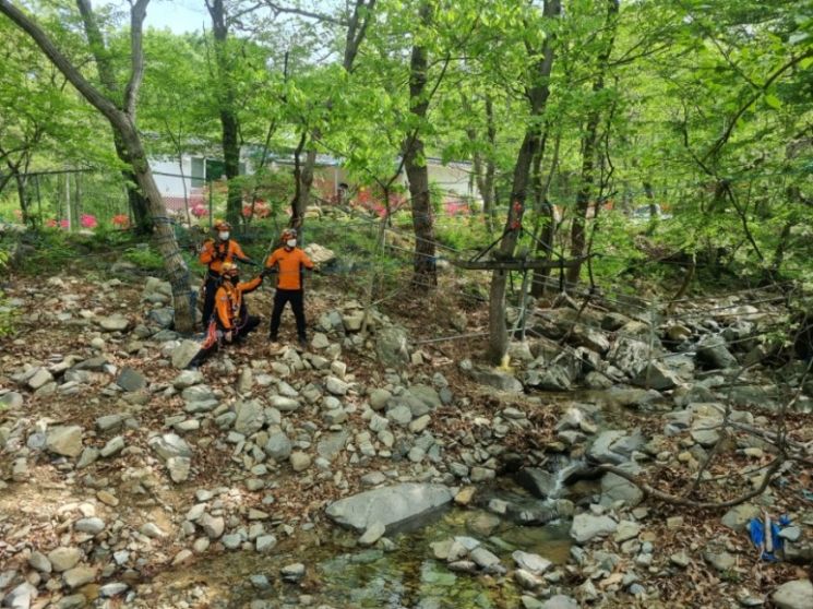 [Asia Economy Honam Reporting Headquarters Reporter Park Jin-hyung] The Dongbu Fire Station of Gwangju Metropolitan City announced on the 28th that it conducted life-saving training and personnel capacity enhancement training for 119 rescue team members in preparation for mountain safety accidents in the area of Chungminsa Valley, Mudeungsan National Park.