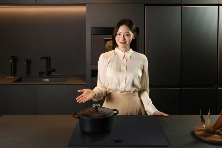 Samsung Electronics will launch a new premium home appliance, the 'Bespoke Induction Infinite Line,' on the 23rd. A Samsung Electronics model introducing the new product. Photo by Samsung Electronics