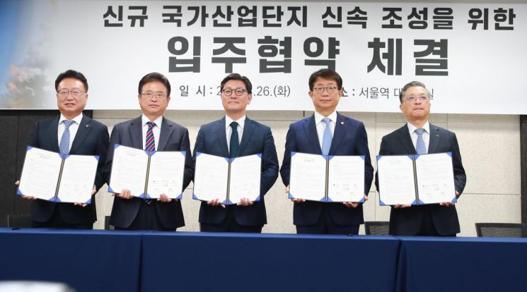 On the 26th, Uljin-gun, Gyeongbuk Province, attended the new national industrial complex occupancy agreement ceremony held at the 4th-floor conference room of Seoul Station, where they signed occupancy agreements with the Ministry of Land, Infrastructure and Transport (Minister Bang Sang-woo), Gyeongbuk Province (Governor Lee Cheol-woo), Korea Land and Housing Corporation (President Lee Han-joon), and representatives of companies wishing to move into the Nuclear Hydrogen National Industrial Complex.