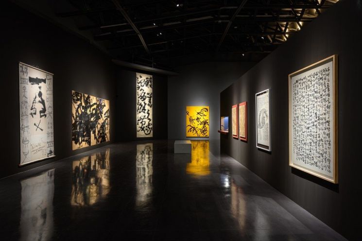 The local exhibition hall view of 'Calligraphy in the Museum_ Korean Modern and Contemporary Calligraphy Exhibition' opened at Taoyuan City Museum of Fine Arts in Taiwan.
